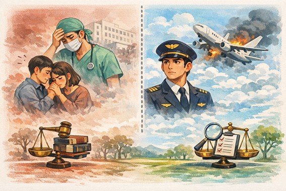 一方、医療事故では医師自身は身体的な被害を受けません。そのため、結果が悪いと“誰かの過失”と捉えられやすく、専門知識の非対称性も相まって、「本当に過失がなかったのか」という疑念が生じやすい構造があります。この構造的な違いが、医療訴訟の増加や萎縮医療につながっている面は否めません。